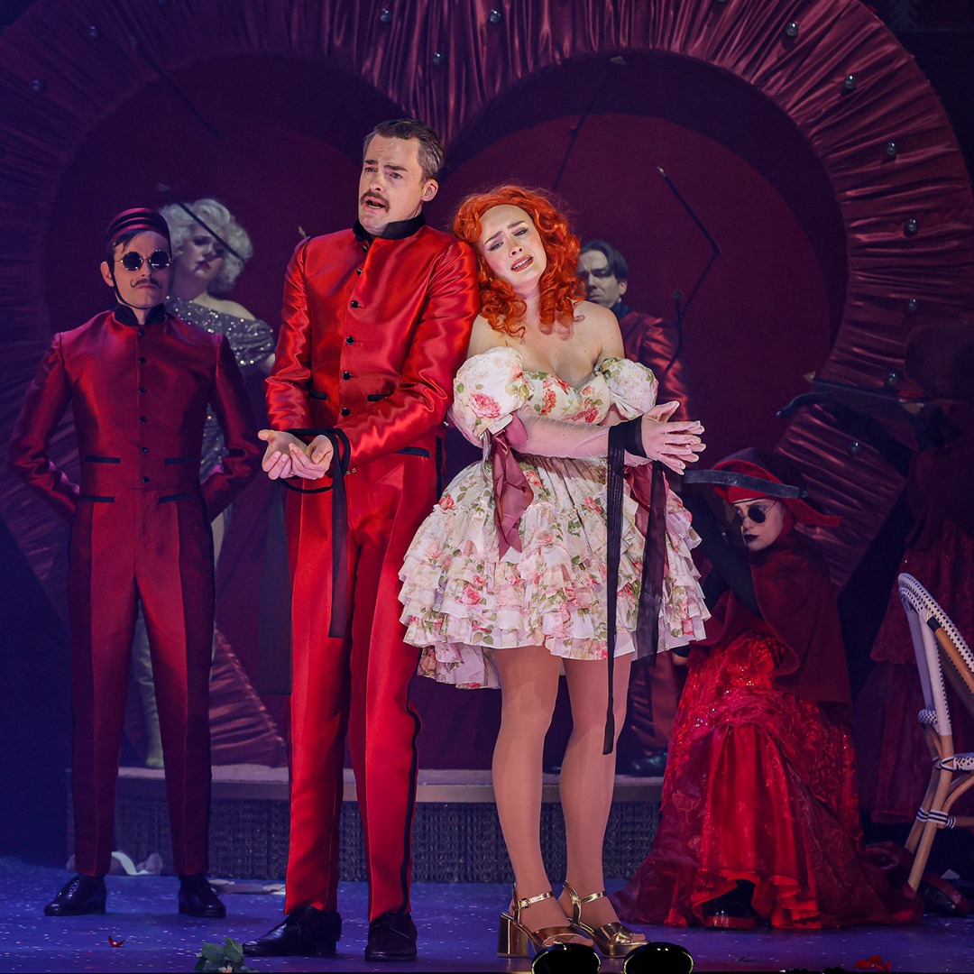 Although The Pasha is only a speaking role, Lyndon Watts’ voice held resonant authority. His larger-than-life presence commanded the stage, and he certainly knew how to swing those flounces for maximum effect.