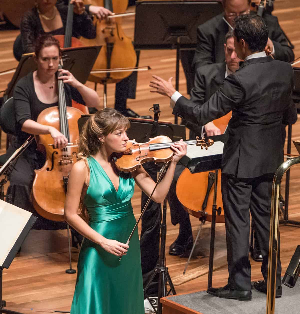 It was revealed in a British newspaper that Benedetti currently plays a “million-pound violin” (the Gariel, a 1717 Stradivarius loaned to her by the banker Jonathan Moulds). But of course the question is: did she make the most of it in her Melbourne concert? Unsurprisingly, the answer is an emphatic “yes”. The violinist took command of the stage from the moment she walked onto it, wearing a flowing green gown and with her long wavy hair cascading down her back. (Those who didn’t know anything about her before the concert were in for a number of pleasant surprises!).